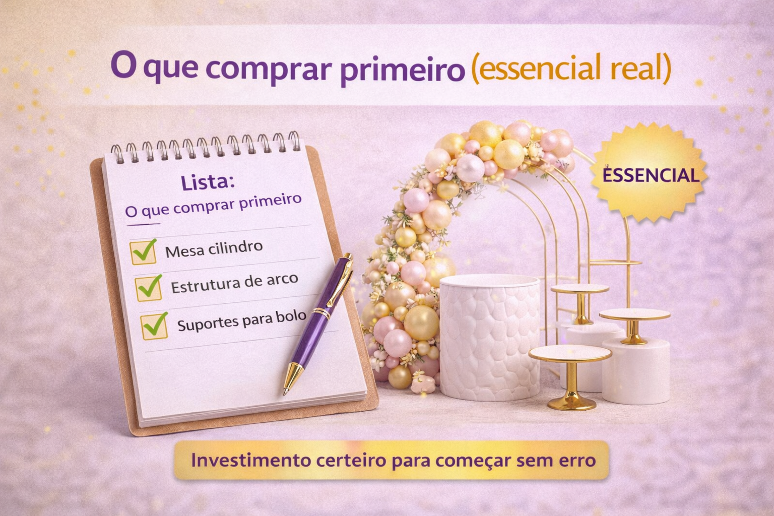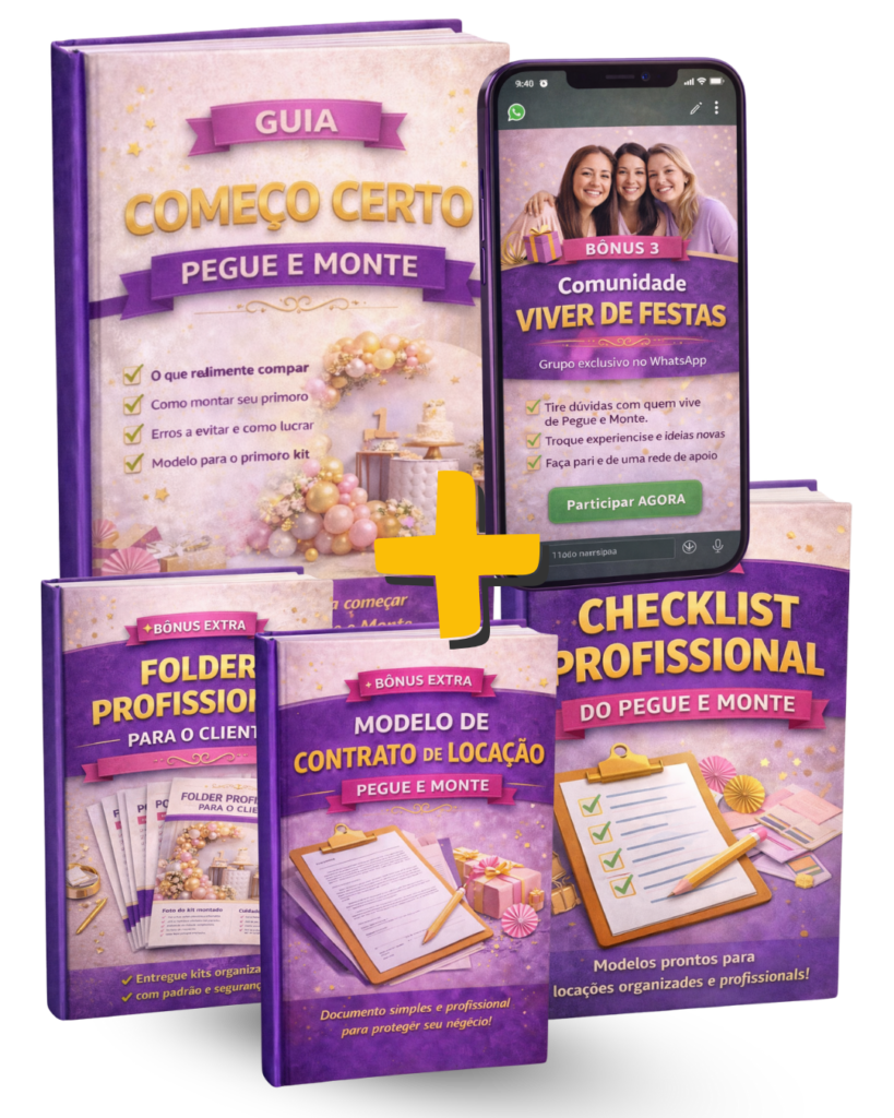 Mesmo começando do zero, você vai descobrir o que realmente é essencial para montar seu primeiro kit Pegue e Monte, evitando compras impulsivas e criando uma base que permite começar a fazer suas primeiras locações com mais segurança.