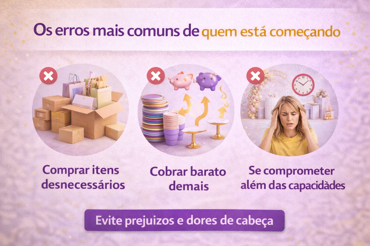 Comprar itens aleatórios sem planejamento e gastar dinheiro antes mesmo de fazer a primeira locação. Muitas iniciantes acabam com peças que não combinam entre si e depois percebem que não conseguem montar um kit bonito ou versátil.
